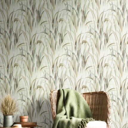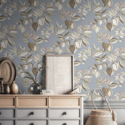 Thai – Parato floreale con foglie stilizzate su trama effetto tessuto