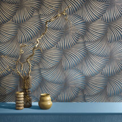 Parato disegno astratto ventagli con riflessi satinati. Trama adattabile ad ogni stile.