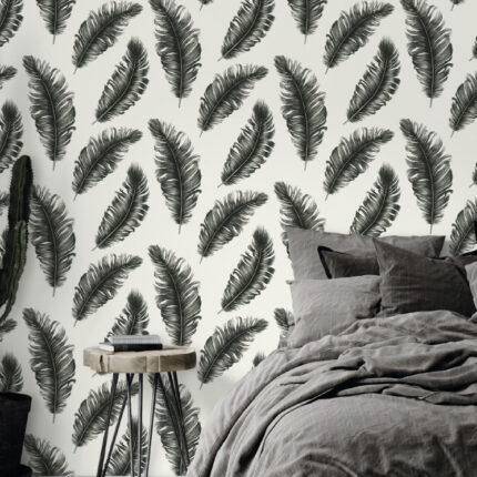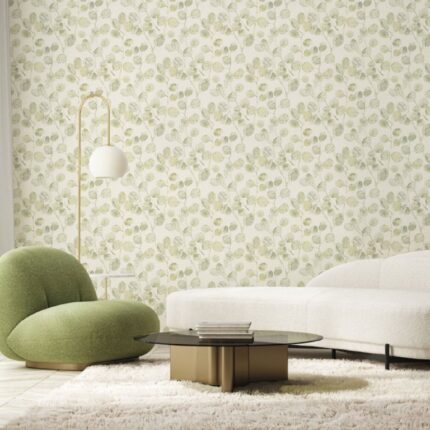 Carta da parato disegno foglie per ambienti contemporanei e classici. Leggermente in rilievo con trama effetto tessuto. Lavabile e resistente agli urti.