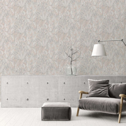 Parato disegno floreale effetto tessuto. Trama in rilievo adattabile ad ogni stile. Lavabile e resistente.