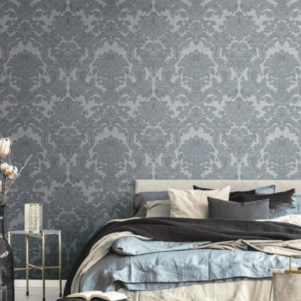 Parato disegno damascato effetto tessuto. Trama in rilievo adattabile ad ogni stile. Lavabile e resistente.