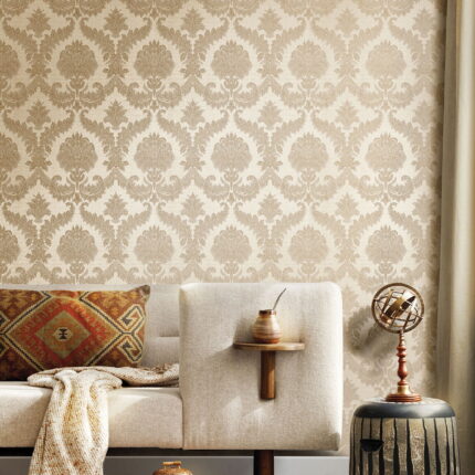 Parato disegno damascato. Trama in rilievo adattabile ad ogni stile. Lavabile e resistente.