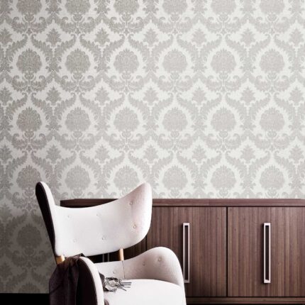 Parato disegno damascato. Trama in rilievo adattabile ad ogni stile. Lavabile e resistente.
