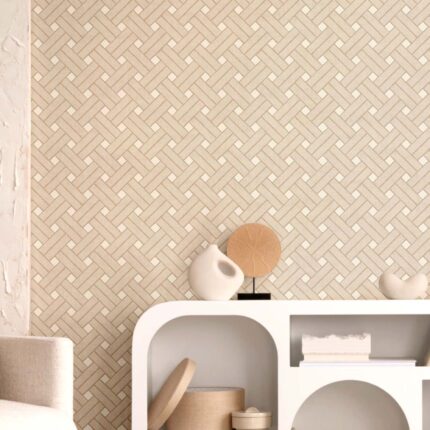 Parato disegno geometrico effetto intreccio. Trama in rilievo adattabile ad ogni stile. Lavabile e resistente.