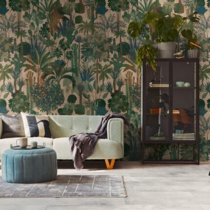 Carta da parato disegno giungla. Parato vinilico su supporto in TNT. Adatto a camere e soggiorni.
