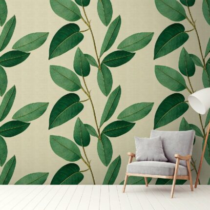 Carta da parato disegno foglie. Parato vinilico su supporto in TNT. Adatto a camere e soggiorni.