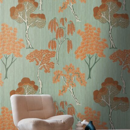 Carta da parato disegno alberi giapponesi. Parato vinilico su supporto in TNT. Adatto a camere e soggiorni.