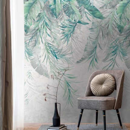 Carta da parato disegno tropicale con vetrata. Parato vinilico su supporto in TNT. Adatto a camere e soggiorni. Consegna 17 gg lavorativi