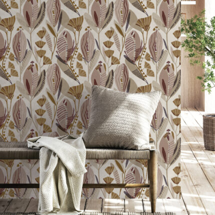 Consegna 12 gg lavorativiPop Colours – Carta da parato floreale stilizzato con trama effetto tessuto in lieve rilievo