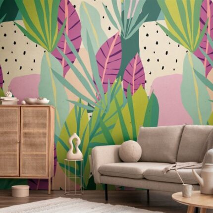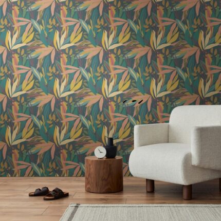 Carta da parato foglie moderne colori brillanti. Stile contemporaneo e moderno per tutte le tipologie di ambienti.