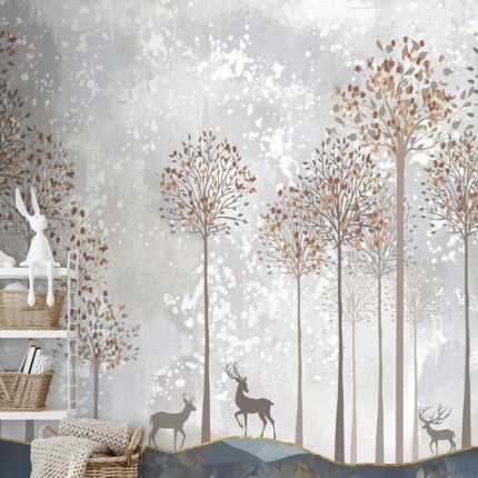 Carta da parato disegno bosco. Parato vinilico su supporto in TNT. Adatto a camere neonati ed infanti.