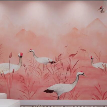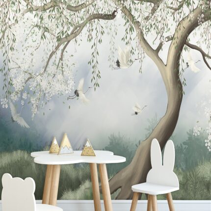 Carta da parato disegno airone giapponese. Parato vinilico su supporto in TNT. Adatto a camere neonati e bambini.