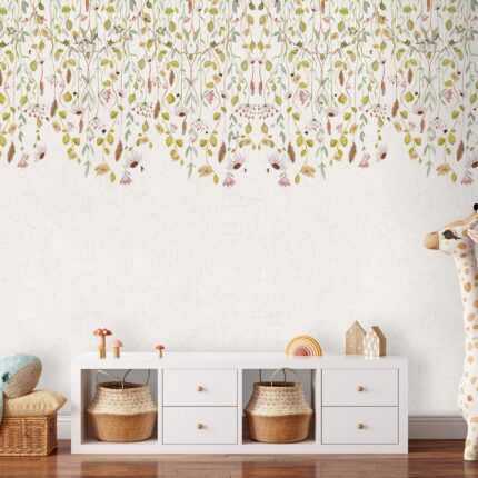 Carta da parato disegno floreale. Parato vinilico su supporto in TNT. Adatto a camere neonati e bambini.