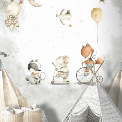 Cute Walls – Parati ripetibili stampa animaletti circo. Dim. H2.80m x L2.12m