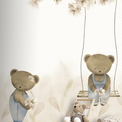 Cute Walls – Poster murali orsetti e fiori per neonati dim. H2.80m x L 2.12m
