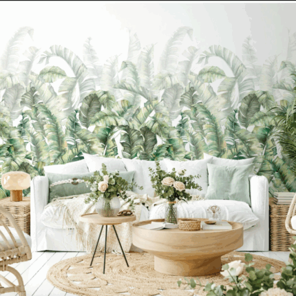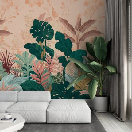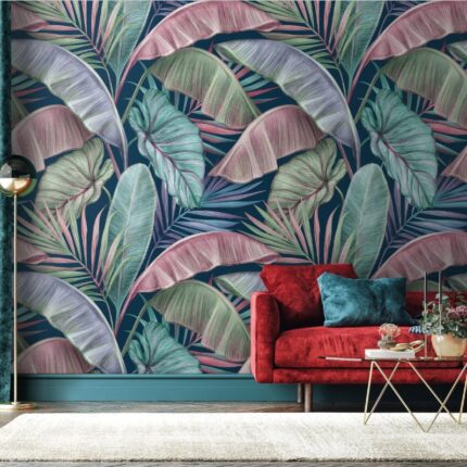 Carta da parato disegno tropicale. Parato vinilico su supporto in TNT. Adatto a camere e soggiorni.