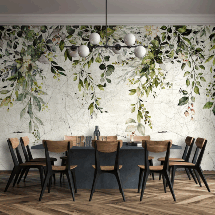 Carta da parato disegno floreale anticato. Parato vinilico su supporto in TNT. Adatto a camere e soggiorni.