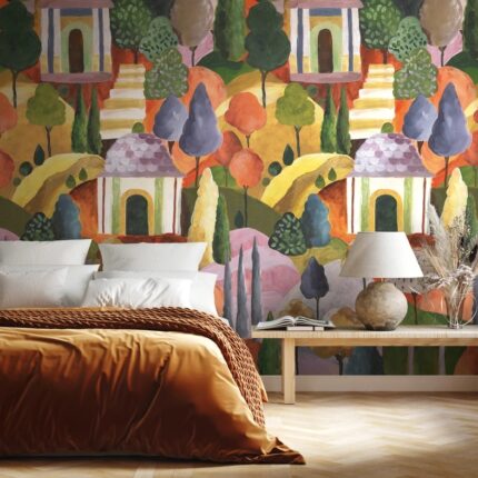 Carta da parato disegno paesaggio. Parato vinilico su supporto in TNT. Adatto a camere e soggiorni.