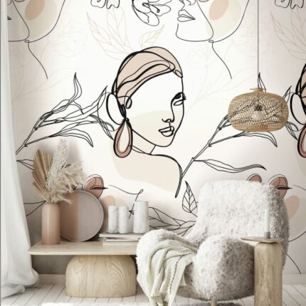 Carta da parato disegno beauty donna. Parato vinilico su supporto in TNT. Adatto a camere letto e soggiorno