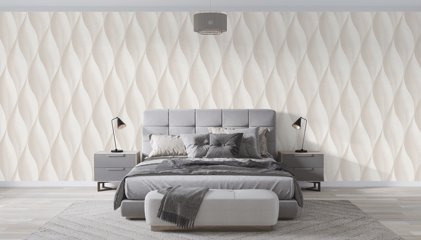 Parato disegno foglie astratte in rilievo. Trama adattabile ad ogni stile.
