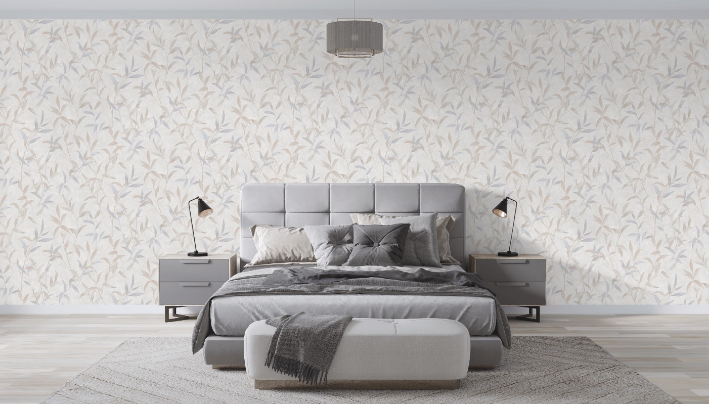 Parato disegno foglie su trama effetto muro. Trama adattabile ad ogni stile.