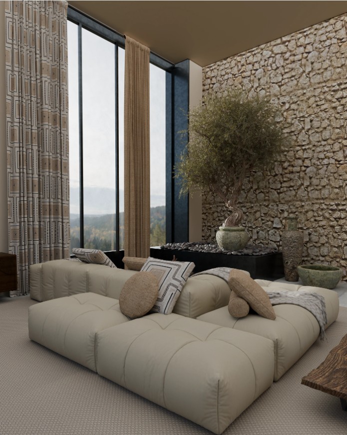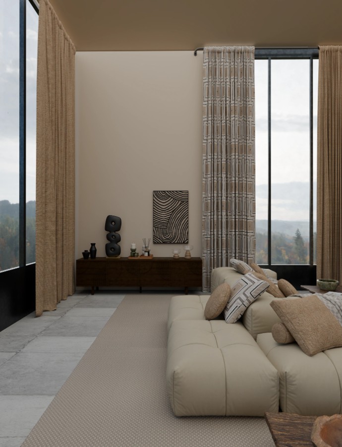 Il tessuto Amaupa della collezione Sarlas è un tendaggio decorativo moderno ed elegante, caratterizzato da una raffinata trama su materico che crea movimento e profondità visiva. La sua lavorazione con trame di tessuti diversi esalta la qualita’, resistenza e raffinatezza del tendaggio. La sua qualità consente anche la lavorazione non solo di calate o tendaggi pesanti, anche di rivestimento cuscini e poltrone.