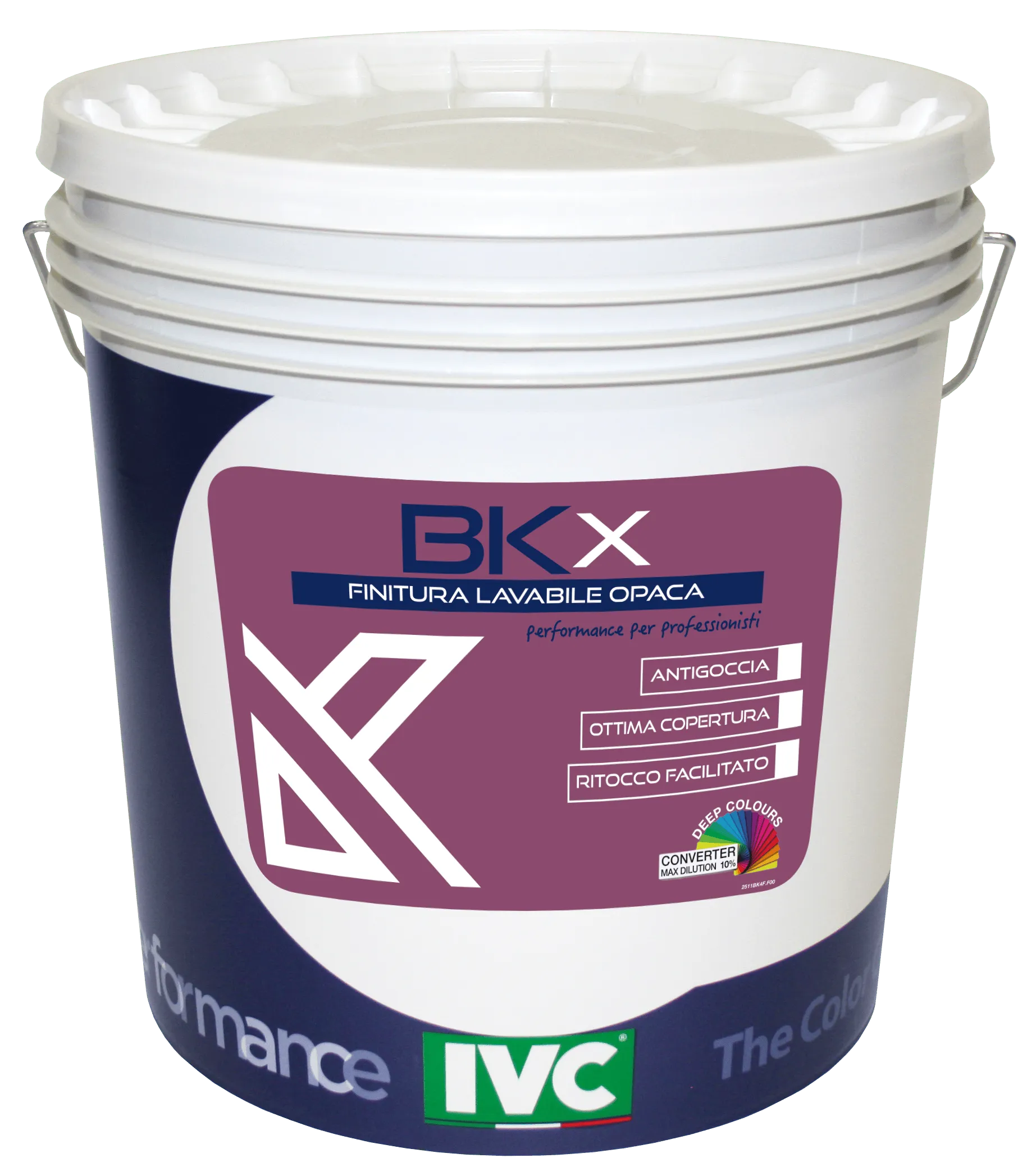BK X è una idropittura lavabile, con un’elevata resa, ottima adesione e potere coprente sia su muri nuovi che già pitturati, elevata opacità. BK X è idoneo per decorare pareti interne ed esterne. Il suo elevato grado di opacità unito alla capacità di mascherare imperfezioni, lo rendono particolarmente adatto per la tinteggiatura di ambienti molto illuminati.