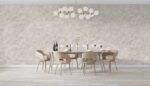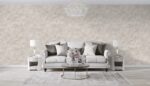 Carta da parato in rilievo con disegno floreale goffrata per ambienti contemporanei e classici. Leggermente in rilievo, lavabile con detergenti neutri e resistente agli urti.