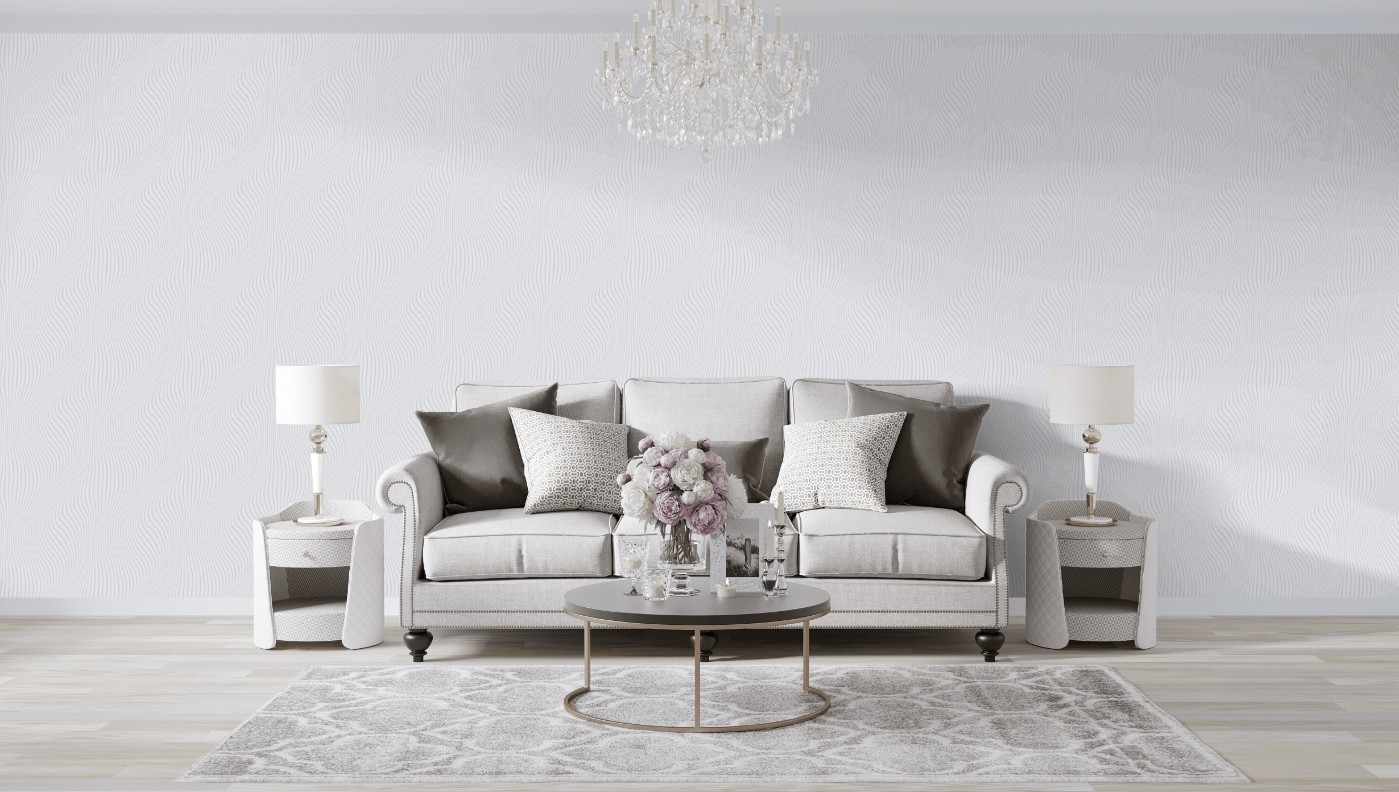 Carta da parato classico in rilievo con disegno tinta unita per ambienti contemporanei e classici. Leggermente in rilievo, lavabile con detergenti neutri e resistente agli urti.