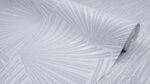 Carta da parato in rilievo con disegno foglie di banano per ambienti contemporanei moderni. Leggermente in rilievo, lavabile con detergenti neutri e resistente agli urti.