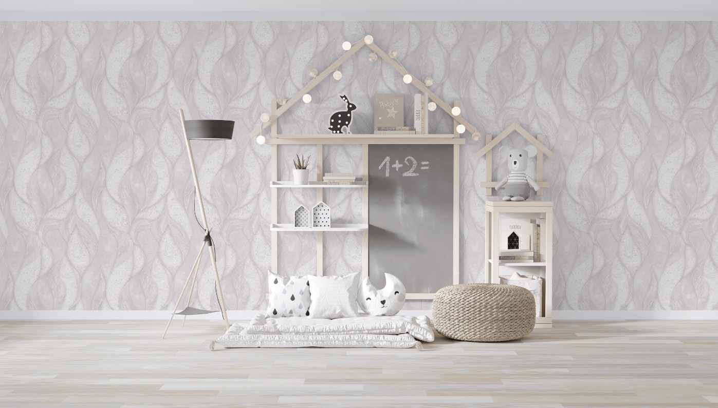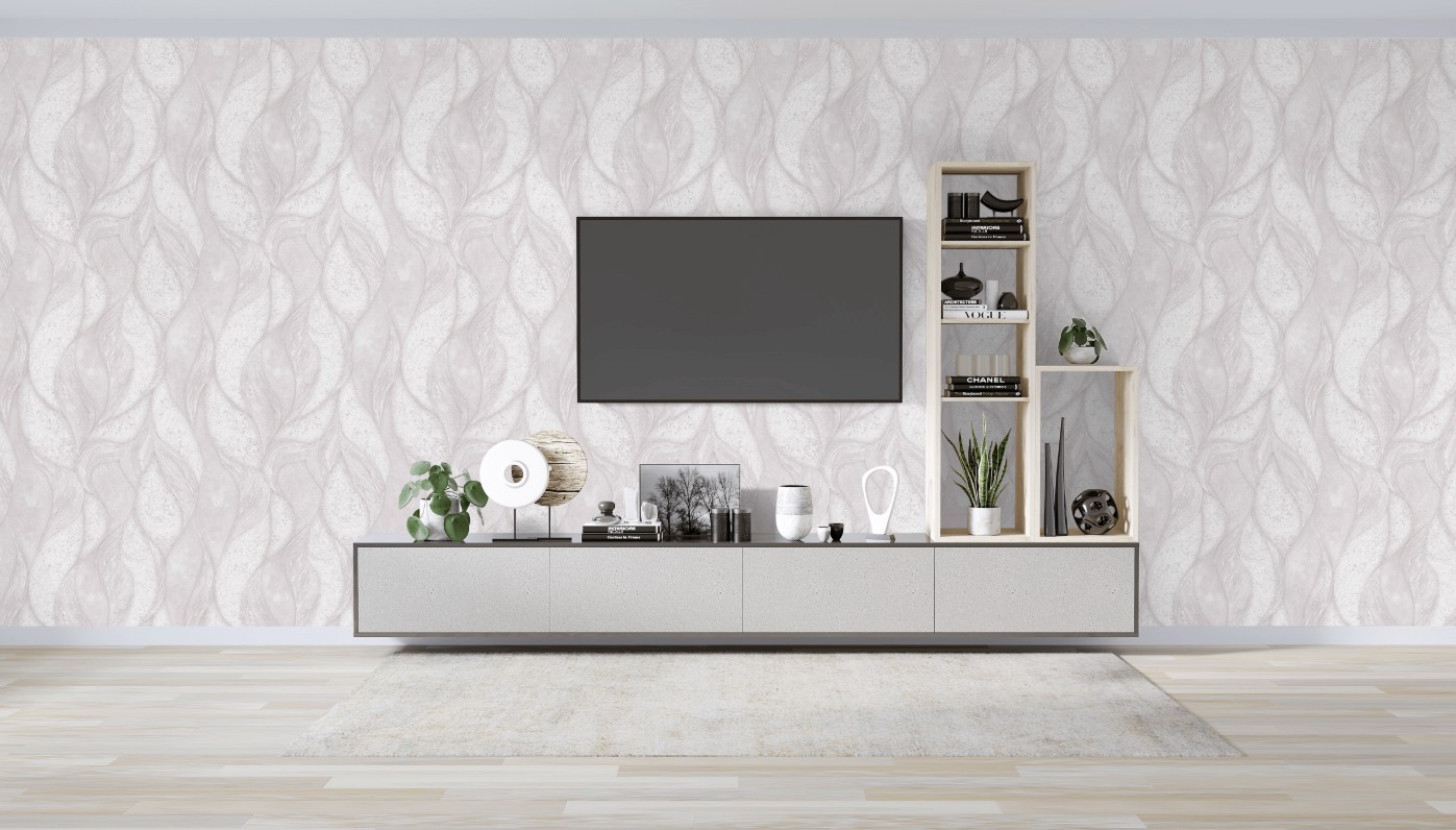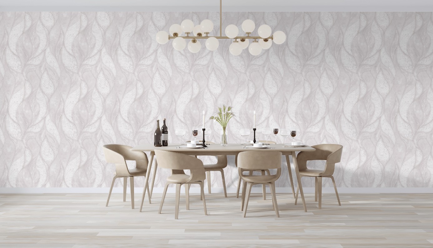 Carta da parato in rilievo con disegno astratto per ambienti contemporanei e classici. Leggermente in rilievo, lavabile con detergenti neutri e resistente agli urti.