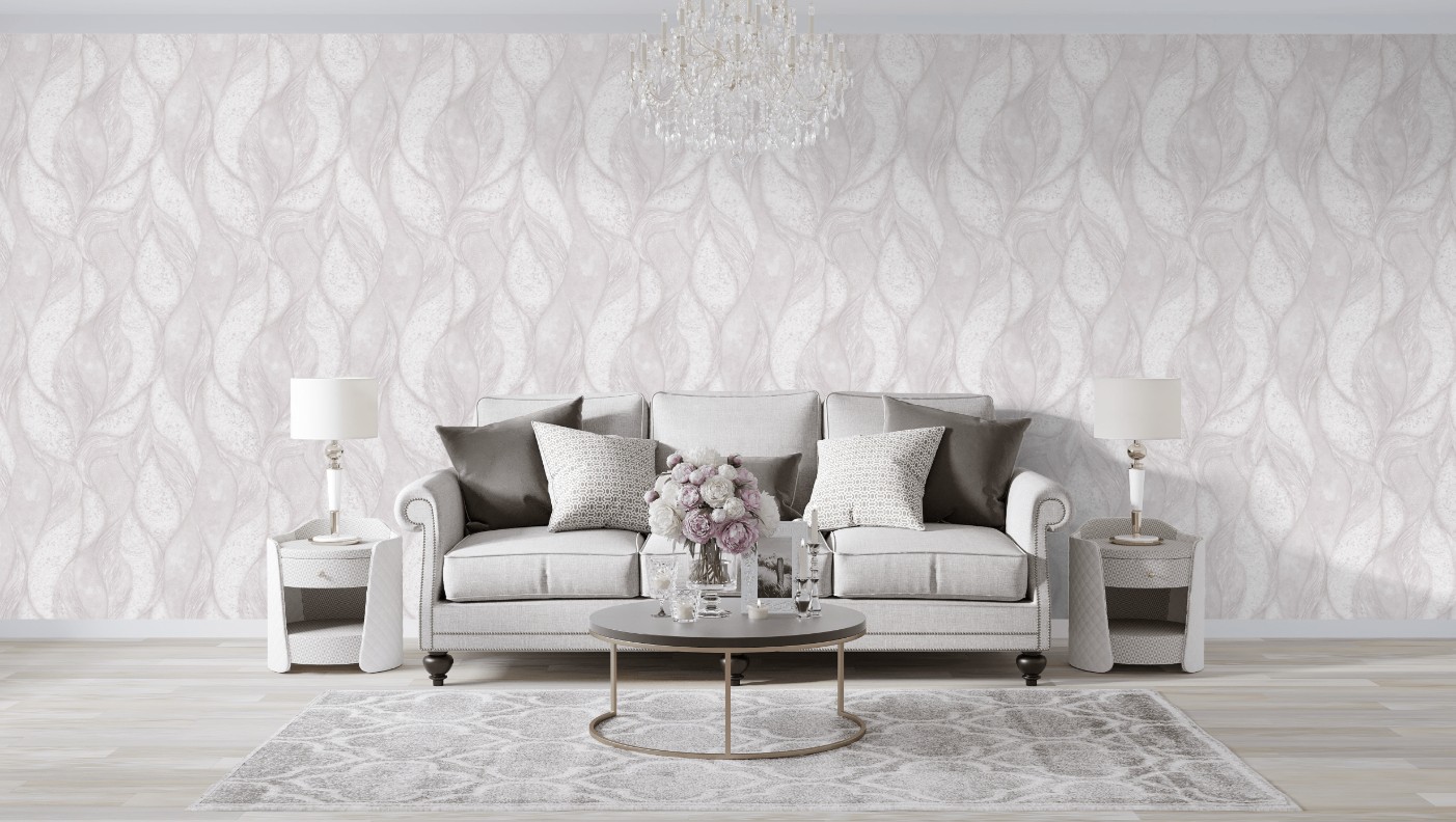 Carta da parato in rilievo con disegno floreale goffrata per ambienti contemporanei e classici. Leggermente in rilievo, lavabile con detergenti neutri e resistente agli urti.