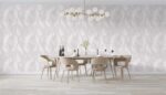 Carta da parato disegno foglie stilizzate. Parato vinilico su supporto in TNT. Adatto a camere e soggiorni.