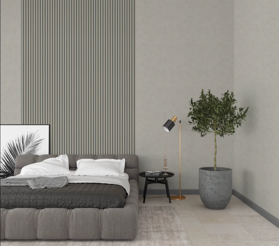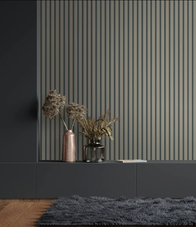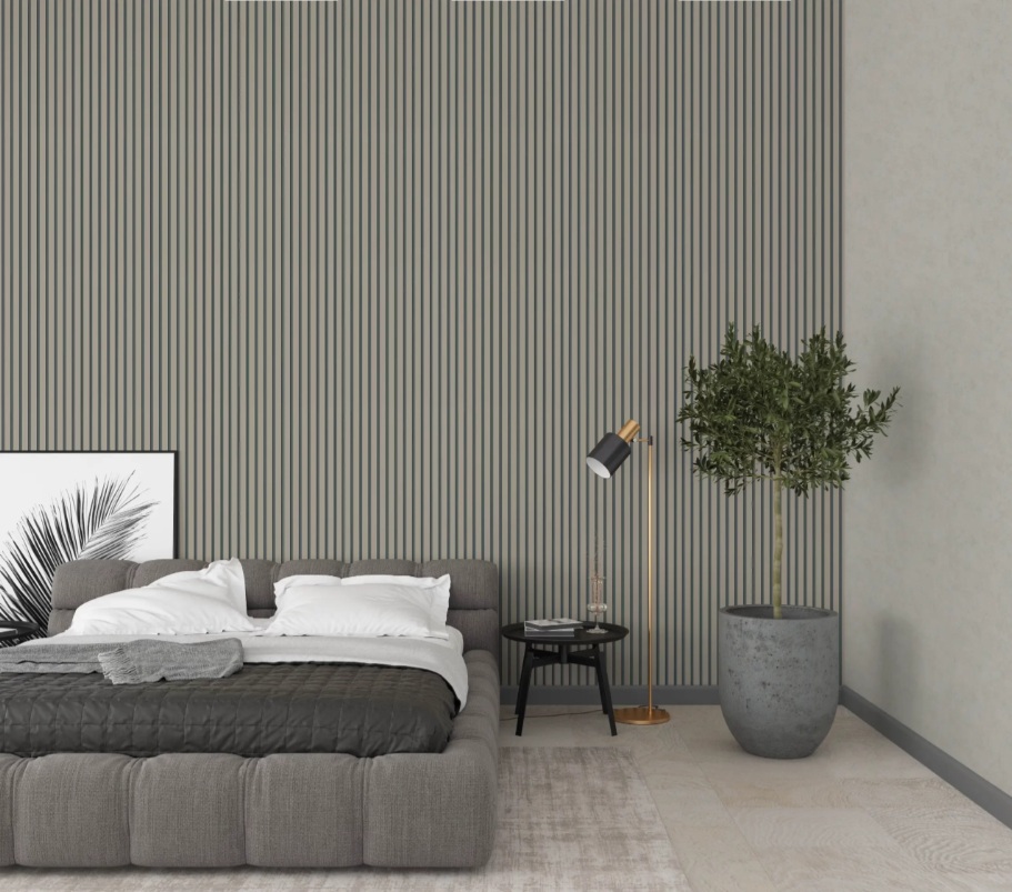 Carta da parato disegno doghe, listelli moderni. Parato vinilico su supporto in TNT. Adatto a camere e soggiorni.