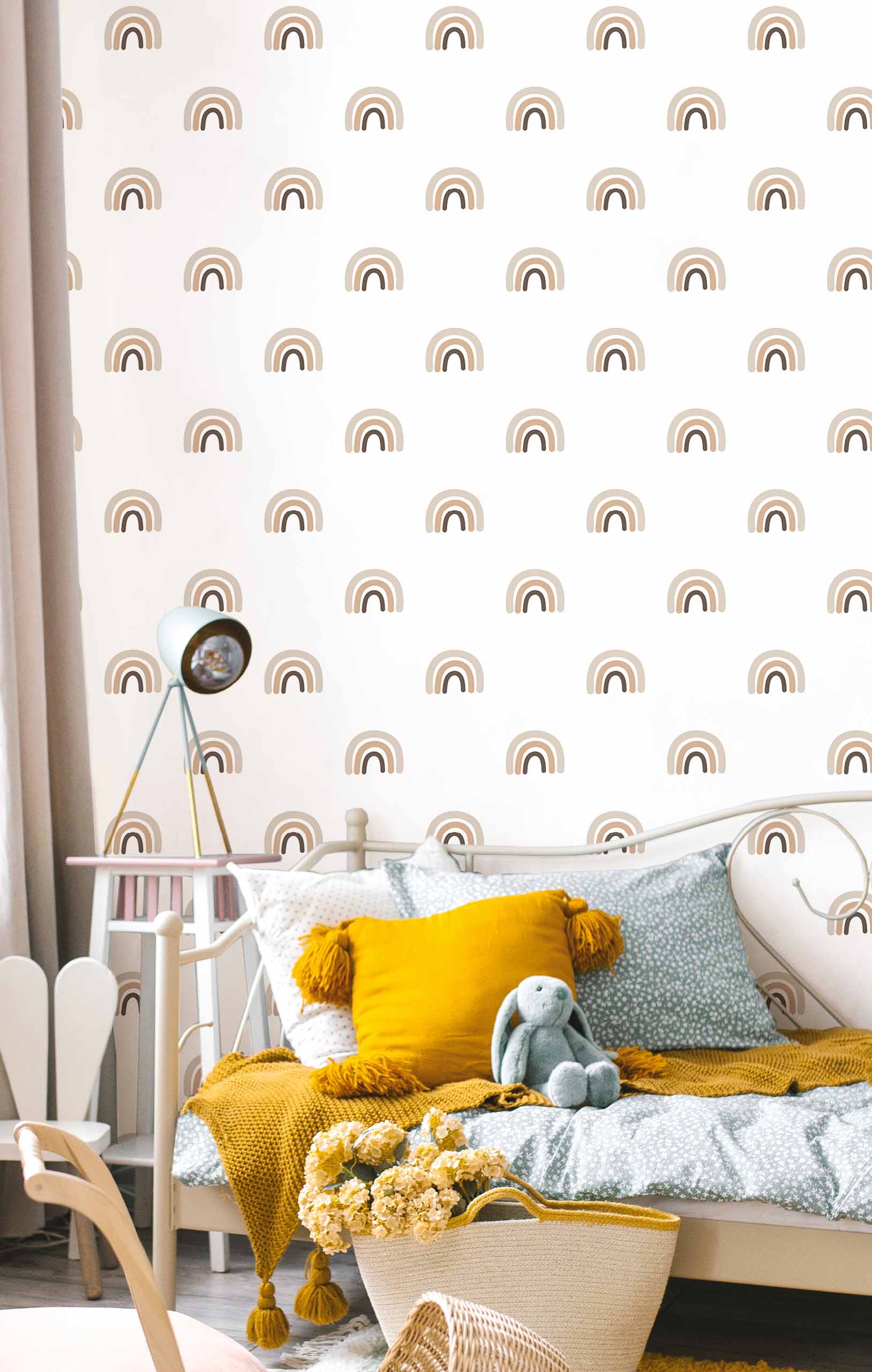 Tag: camera da letto, Carta da parato contemporanea, disegno arcobaleno, soggiorno