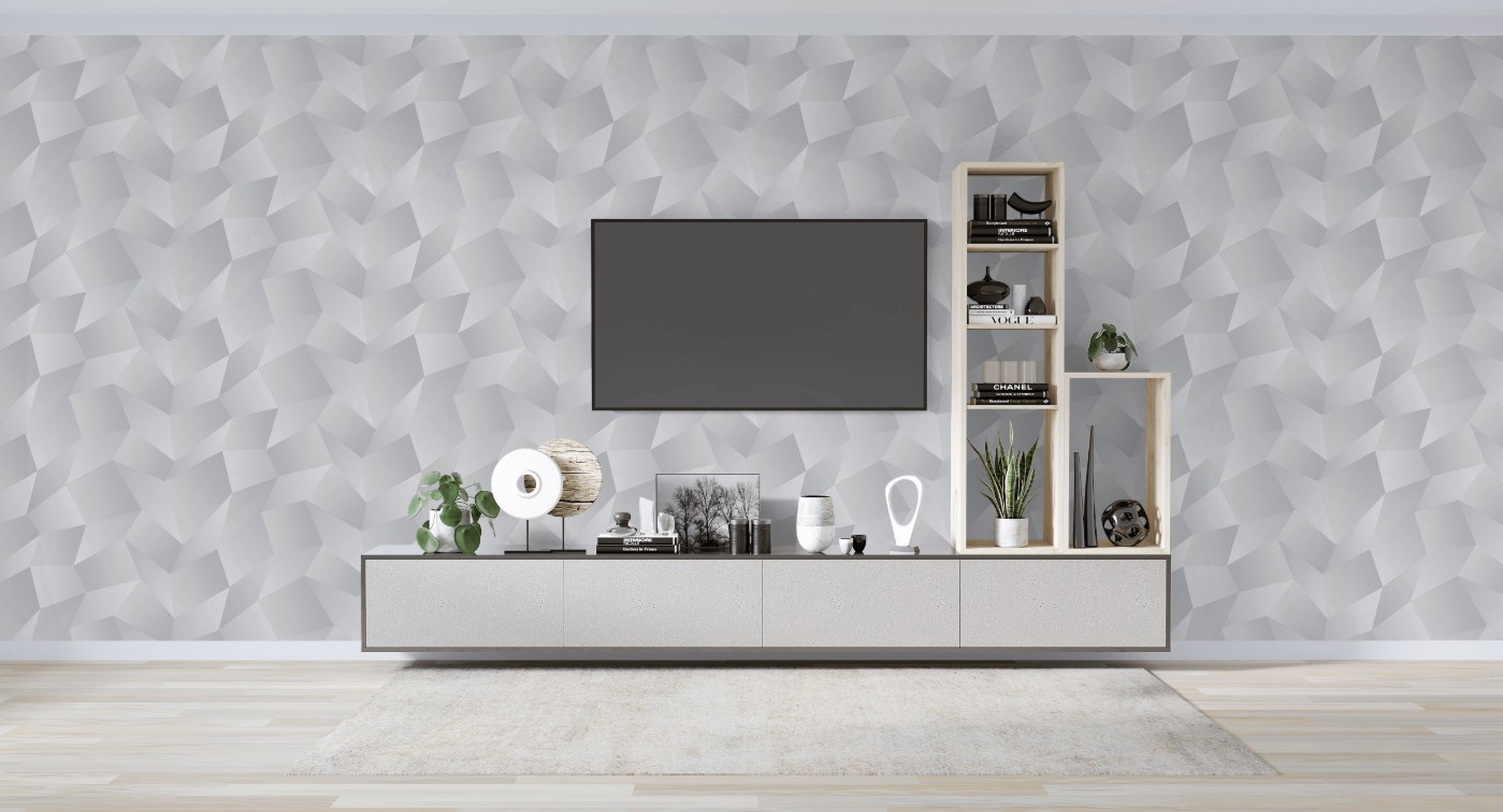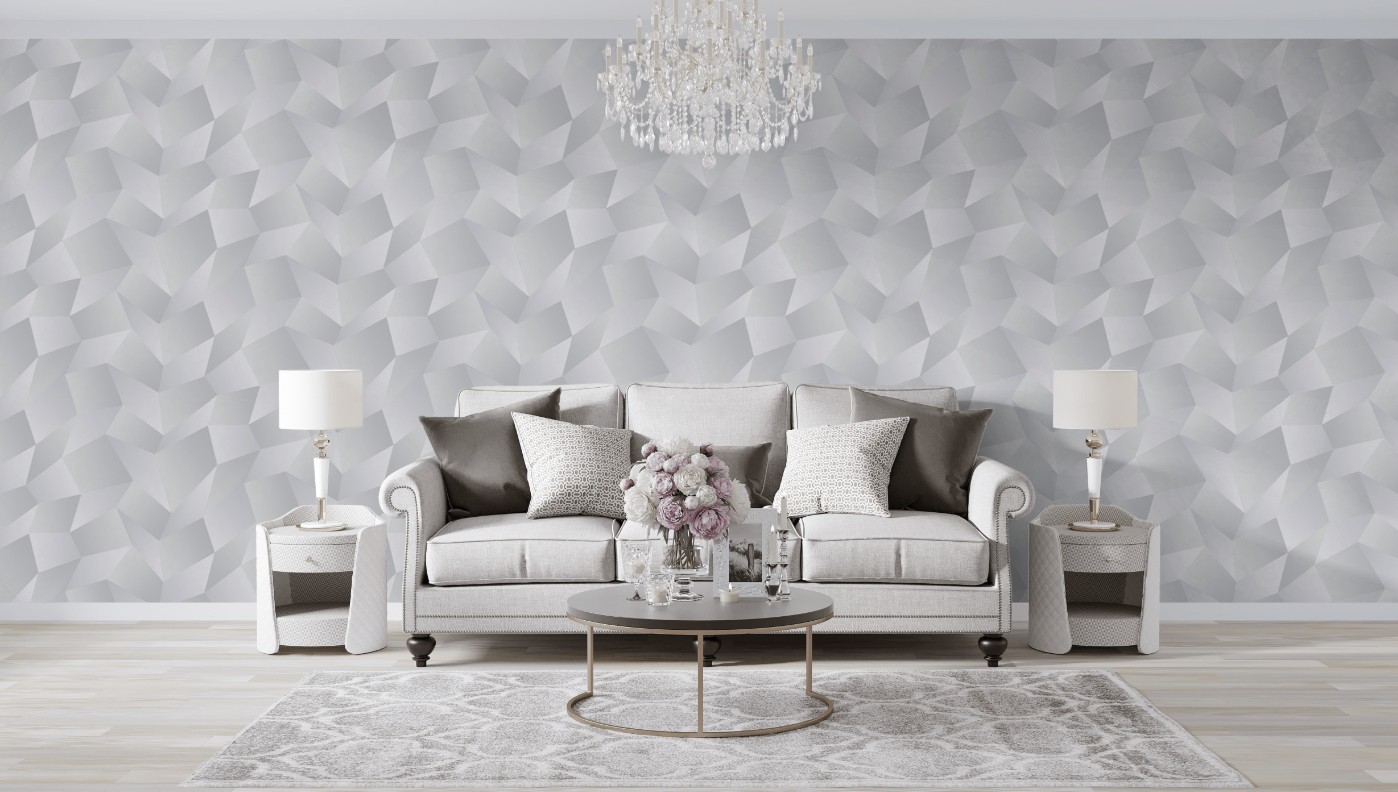 Carta da parato disegno geometrico 3d in rilievo. Parato vinilico su supporto in TNT. Adatto a camere e soggiorni.