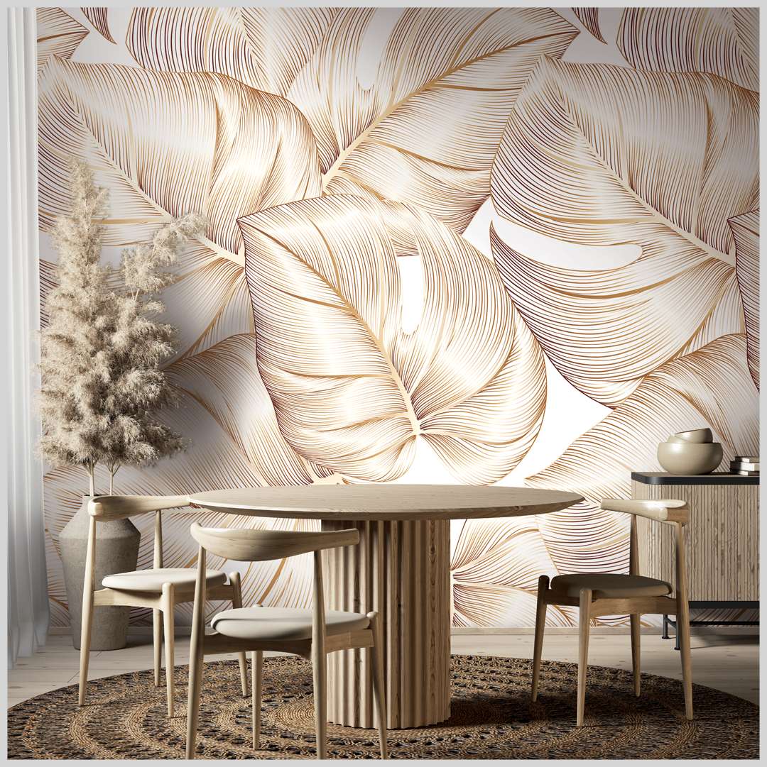 Carta da parato in stock, offerta prezzo imbattibile. Stampa foglie grandi. Colore brillante per soggiorni e camere da letto.