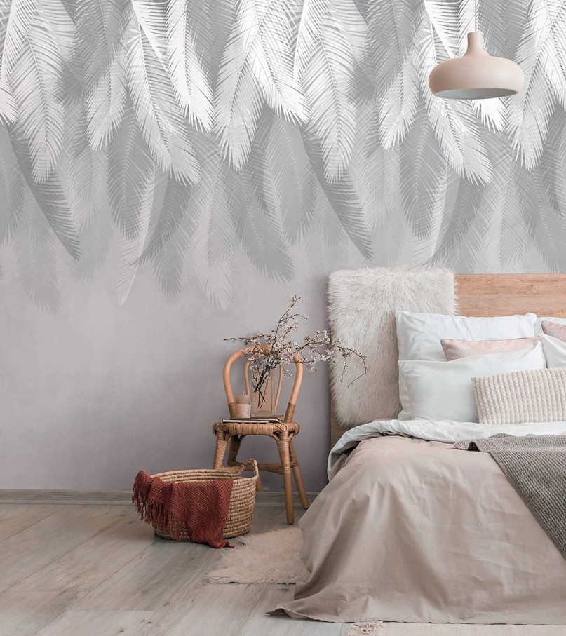 Carta da parato disegno tropicale per ambienti contemporanei e moderni. Leggermente in rilievo, lavabile con detergenti neutri e resistente agli urti.