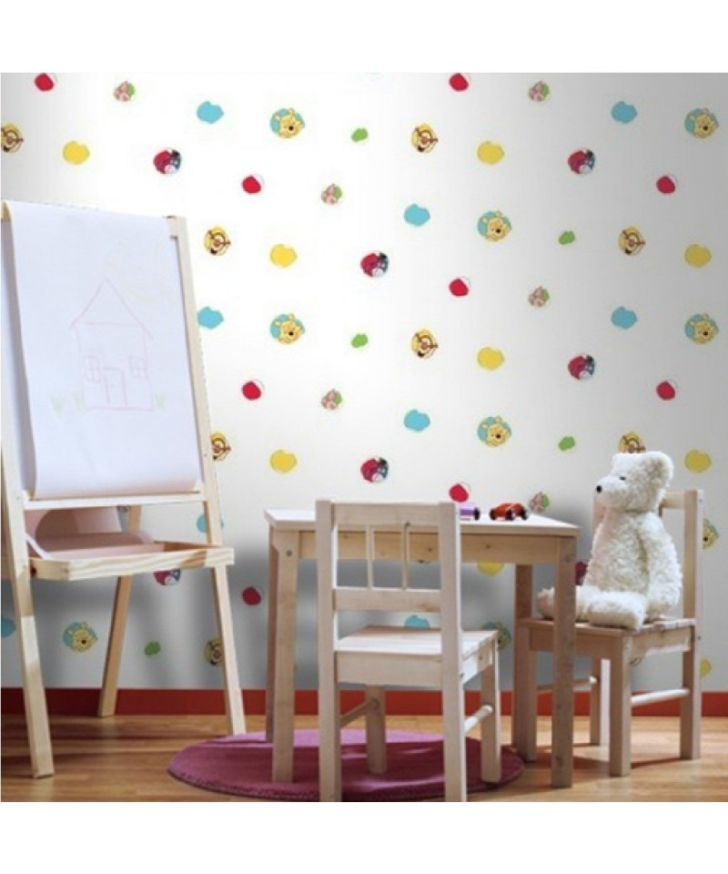 Carta da parato Winnie the Pooh per cameretta bambini, in stock fino ad esaurimento scorte con prezzo offerta. Disegno per camerette con ottima qualita’.