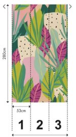 Carta da parato foglie tropicali moderne colori brillanti. Stile contemporaneo e moderno per tutte le tipologie di ambienti.