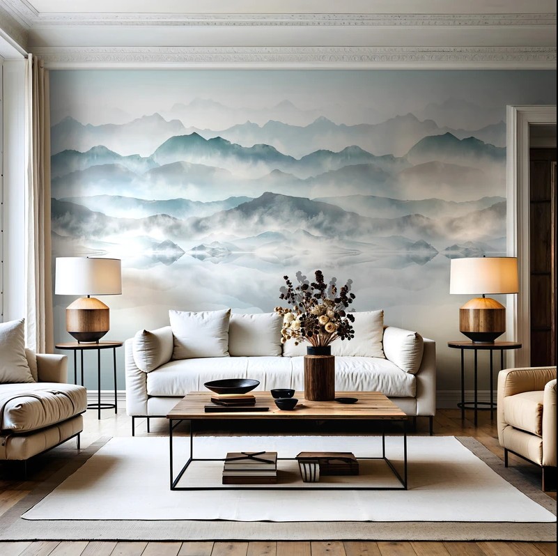 Rio – Pannello in carta da parato stampa nebbia montagne. Dim. altezza 2.70m x Lunghezza 1.59m