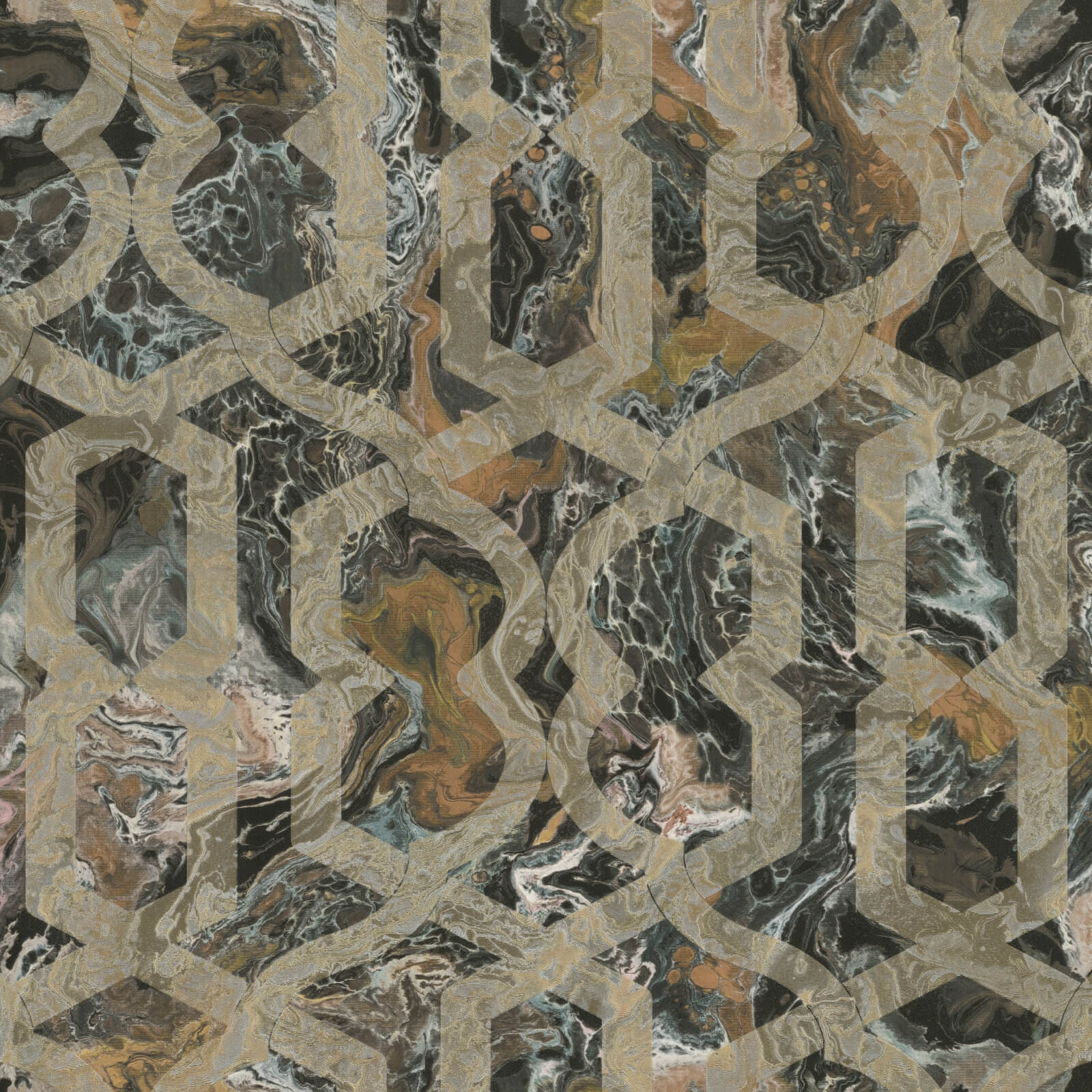 Splendor – Parato Murella stampa geometrica e base marmo glitterato.