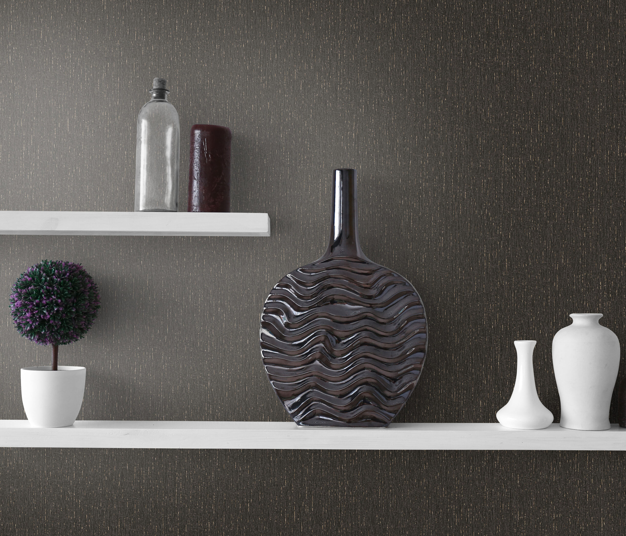 Carta da parato disegno moire' tinta unita per ambienti contemporanei, classici e moderni. Leggermente in rilievo, lavabile con detergenti neutri e resistente agli urti.