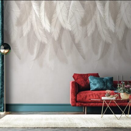 Carta da parato in rilievo con disegno foglie per ambienti contemporanei e classici. Leggermente in rilievo, lavabile con detergenti neutri e resistente agli urti.