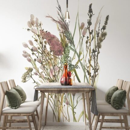 Carta da parato stampa fiori di campo. Colore brillante per soggiorni e camere da letto.