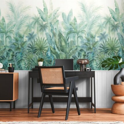 Unico – Carta da parati tropicale con boiserie. Ripetibile dim. L1.59m x H2.80m