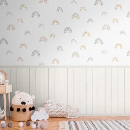 Unico – Parato bambini con boiserie ed arcobaleni. Ripetibile dim. L1.59m x H2.80m