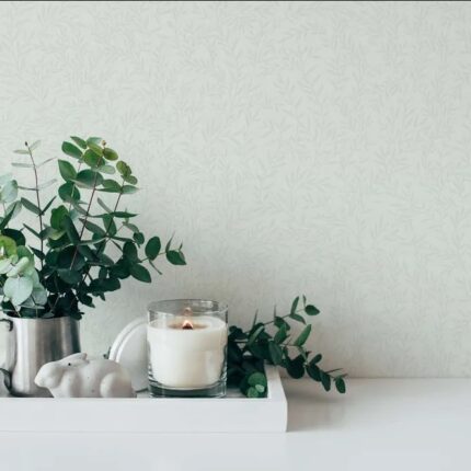 Parato disegno foglie su trama effetto muro. Trama adattabile ad ogni stile.