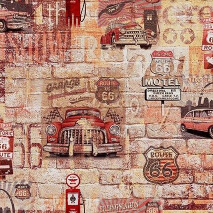 La casa di carta – Parato stampa mattoni con disegni di auto americane