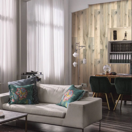 Carta da parato disegno materico doga in legno. Parato vinilico su supporto in TNT. Adatto a camere e soggiorni.